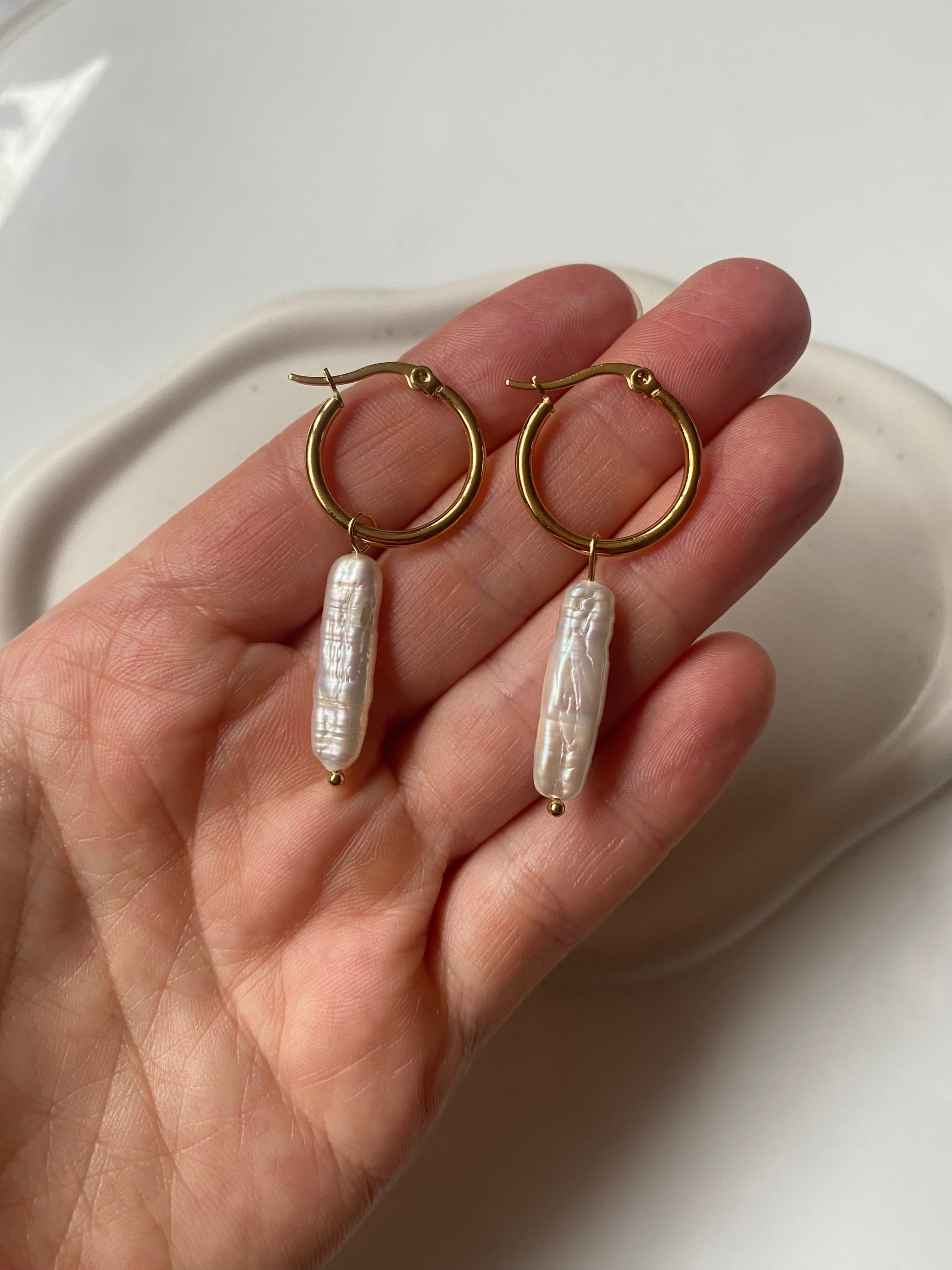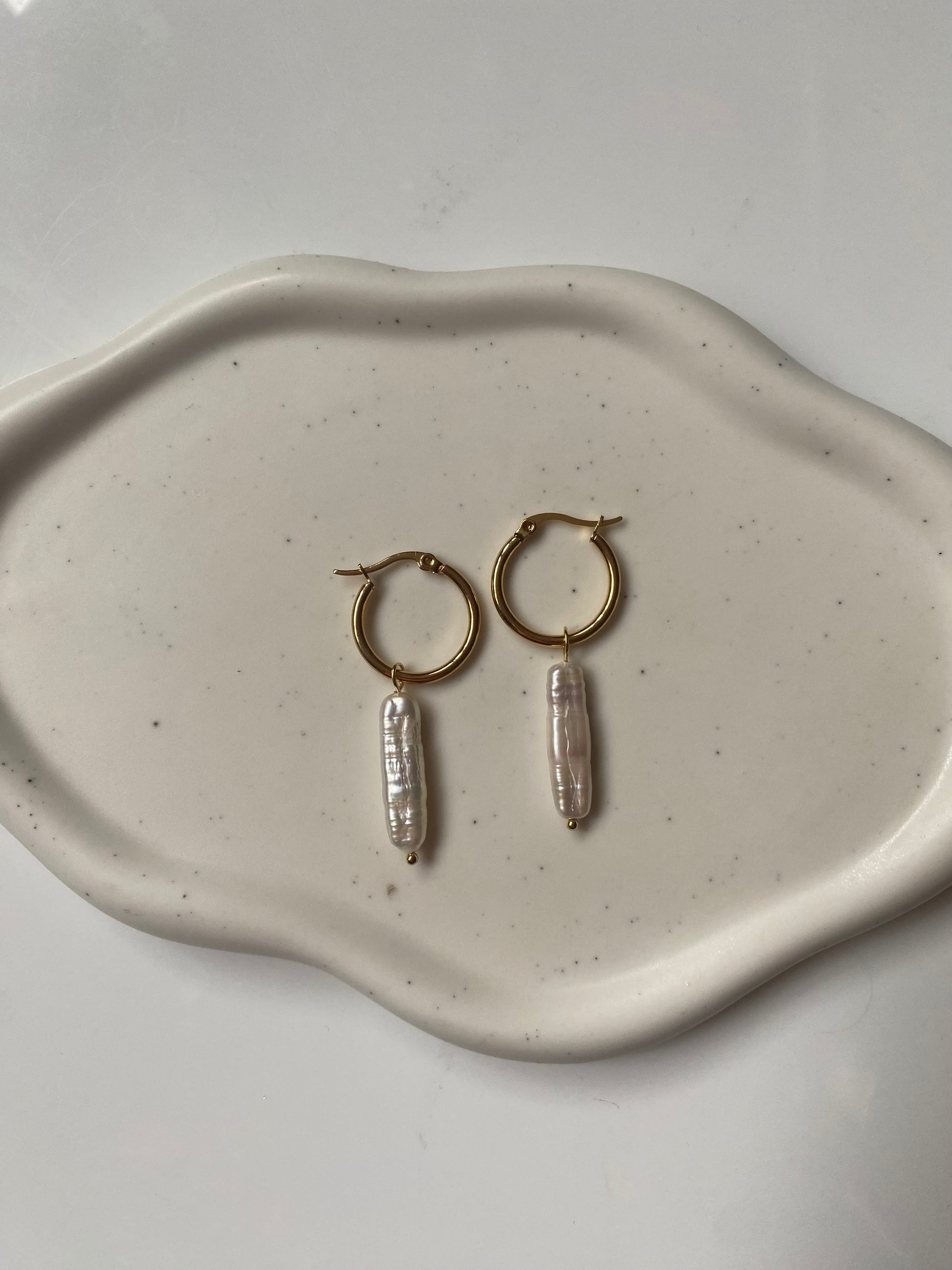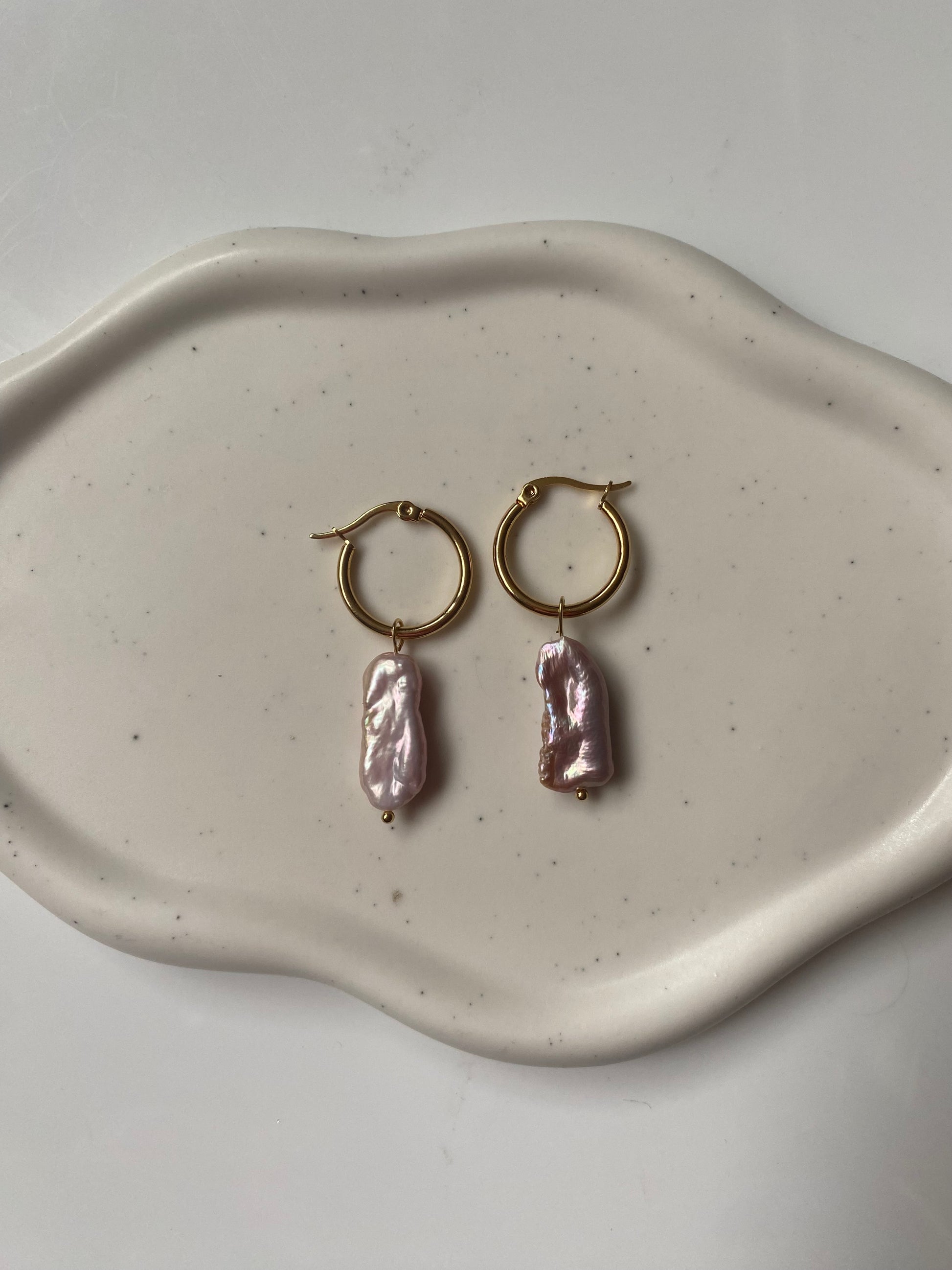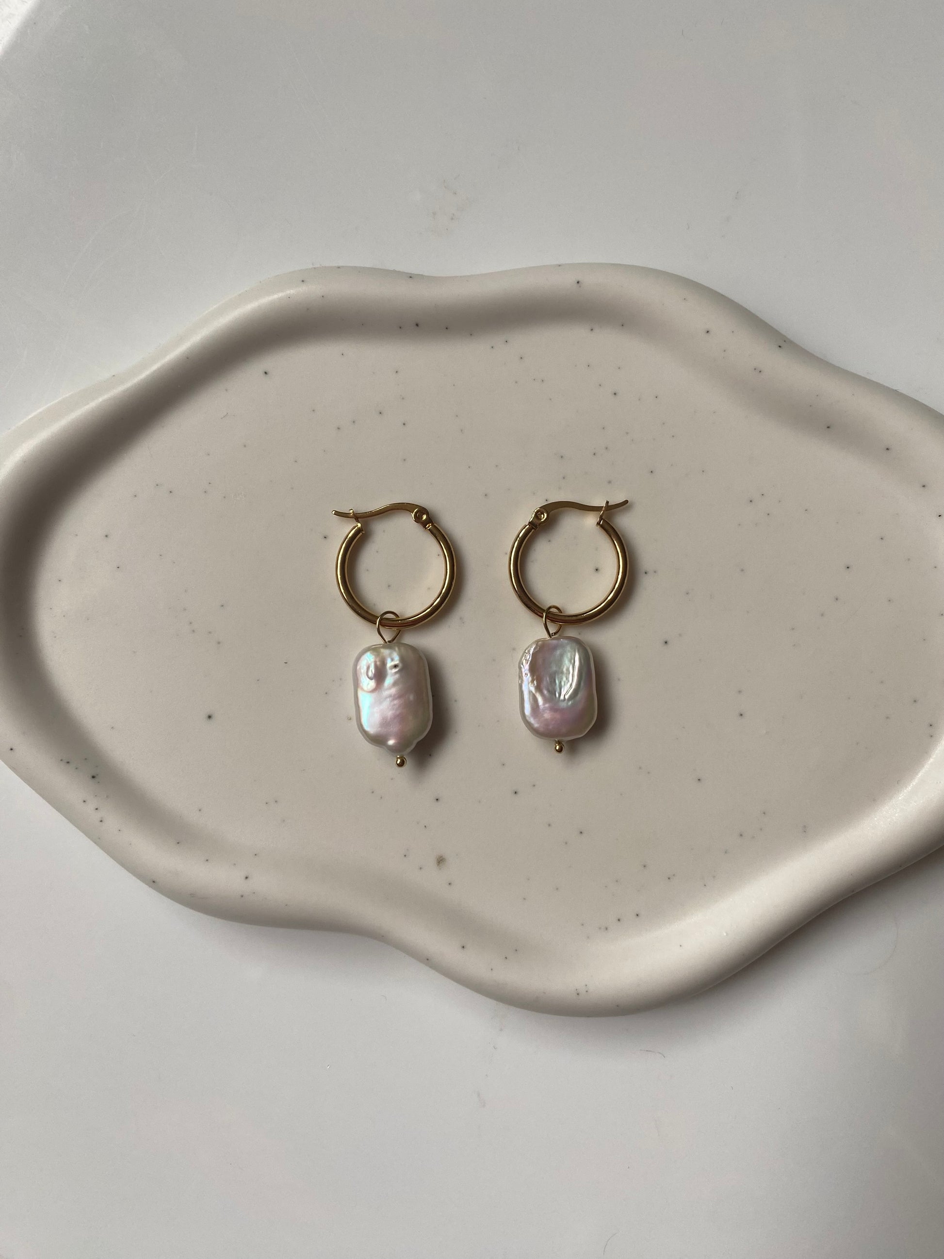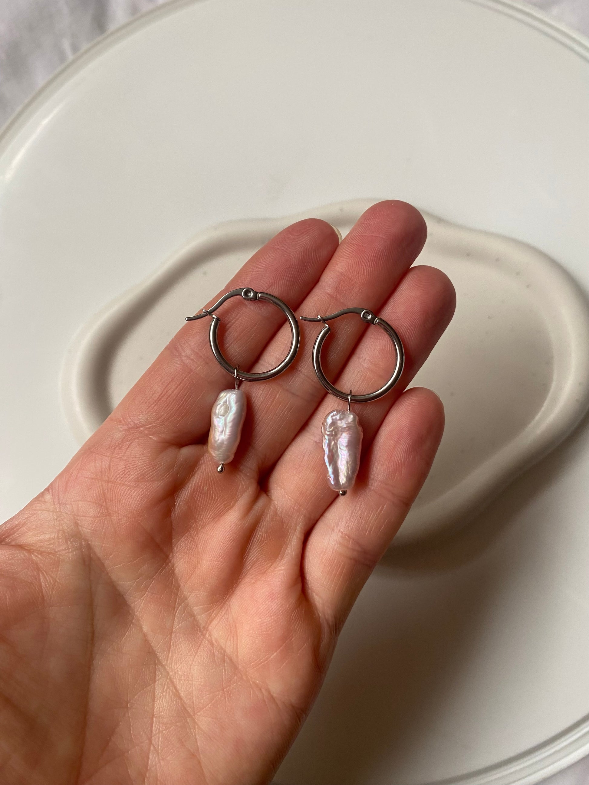 The Precious Pearl Earrings are made from real freshwater pearls. Shape, size and colour may vary from each pearl, that is the nature when it is coming from a living creature. Perfectly, imperfect pearls. Pearls can be broken under pressure, so please be careful where jewels are stored.